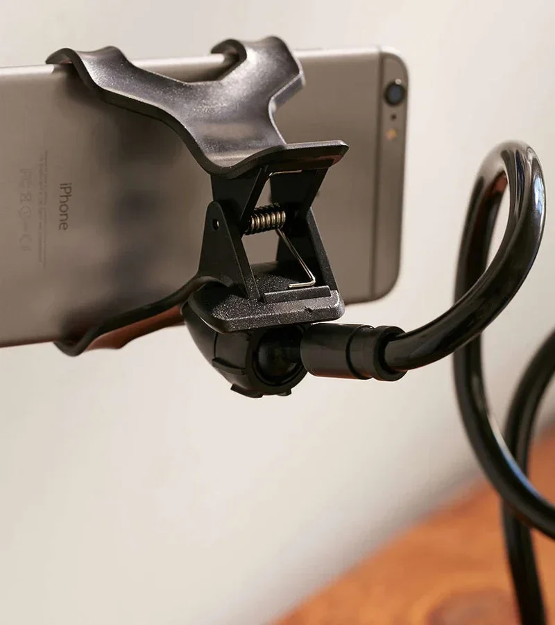 Ce support flexible pour smartphone conçu pour être clipsé sur la plupart des surfaces va vous éviter quelques torticolis. Parfait pour regarder des films, écouter de la musique, suivre une recette et même passer un coup de fil.