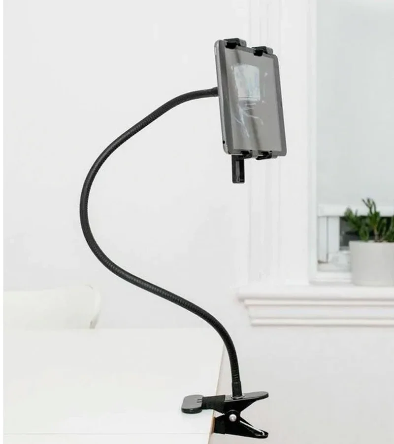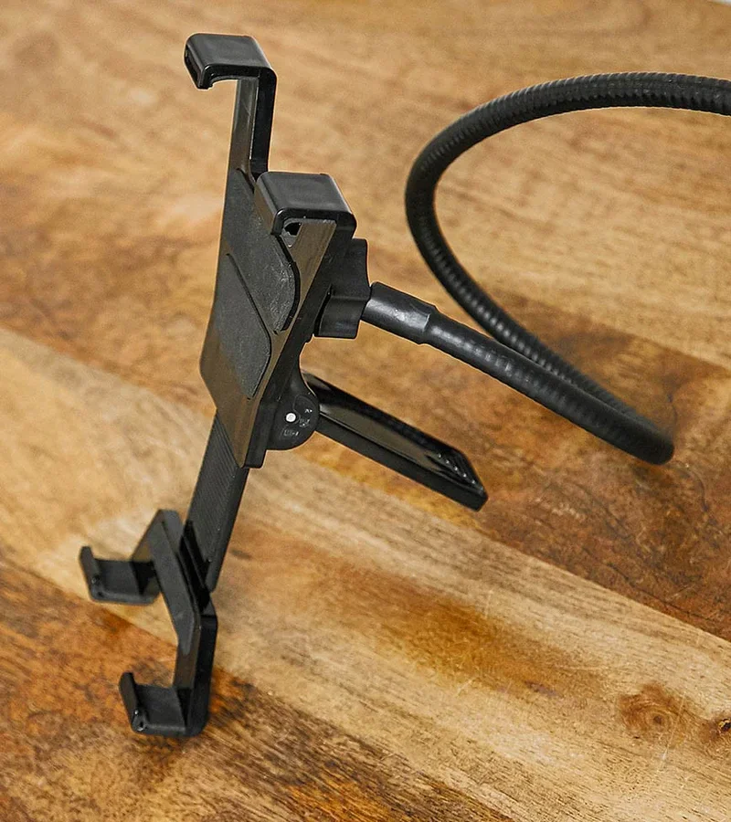 Vous avez encore raté le moment le plus important de l'épisode de votre série parce que vous êtes parti faire à manger ? C'est fini tout ça ! Avec ce support pour tablette flexible, regardez où que vous voulez vos films et séries préférés. Ne laissez plus un seul moment vous échapper. Il est aussi parfait pour suivre ses recettes de cuisine.