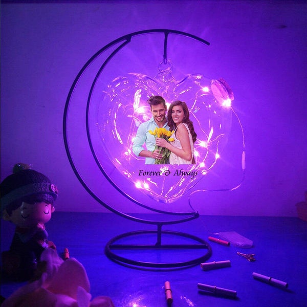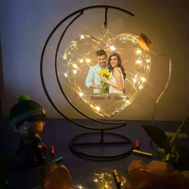 Lampe bouteille de vœux personnalisée en forme de cœur