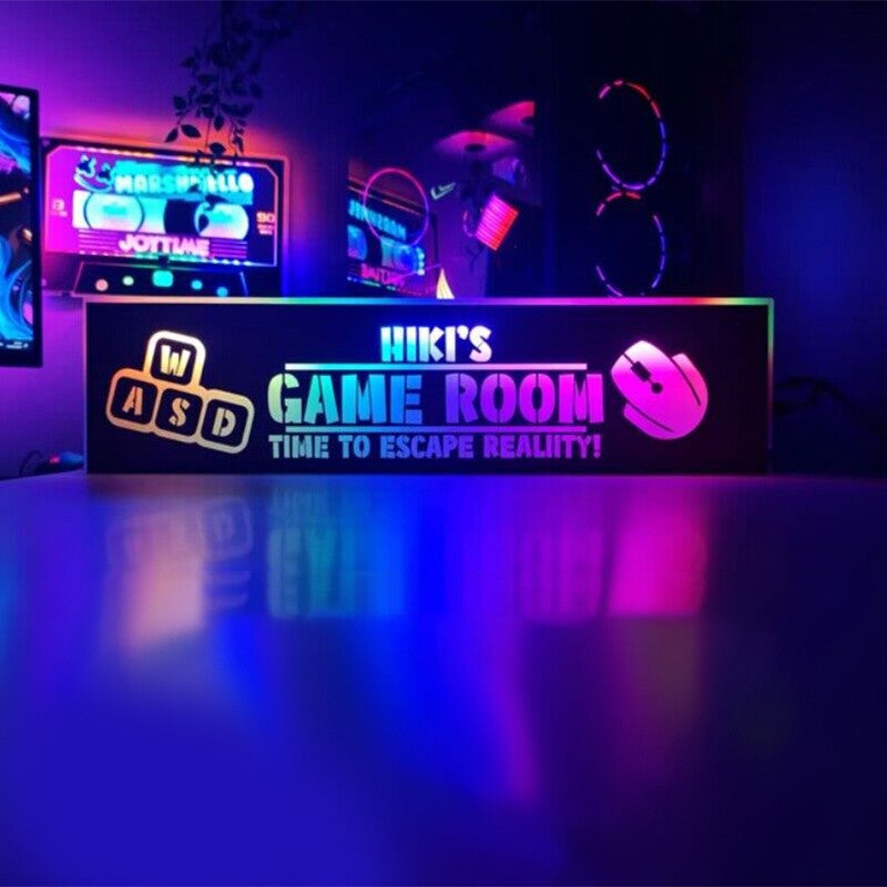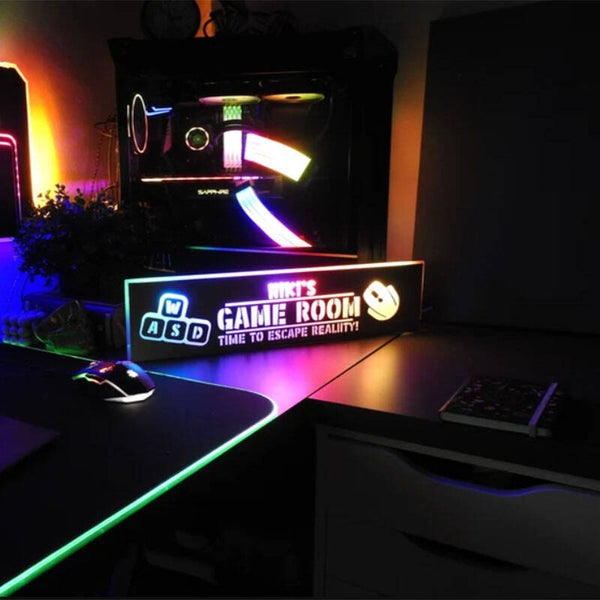 La danse de la lumière autour du bord du panneau se reflète sur votre mur et ajoute une ambiance complètement différente au panneau. Votre place est sûre d'être à égalité avec nos panneaux de salle de jeux. Vous pouvez le poser directement sur une table, sur une étagère, ou l'accrocher au mur à l'aide des trous au dos.