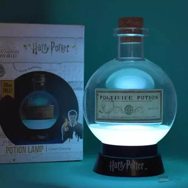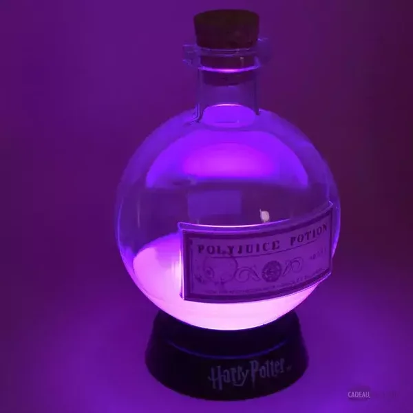 Cette Grande Lampe Polynectar Harry Potter qui change de couleur comme par magie, va devenir un véritable atout déco pour votre intérieur ! Malheureusement, cette lampe ne vous permettra pas de vous infiltrer dans le Ministère de la Magie comme l'ont fait Harry, Ron et Hermione, mais elle permettra de donner un côté coloré à votre chambre ou à votre salon. Fermez la lampe à l'aide du bouchon de liège et admirez-la passer de l'orange, au jaune, au vert, au bleu, au violet, au rose au rouge ! Bref, cette lampe va vous en faire voir de toutes les couleurs…