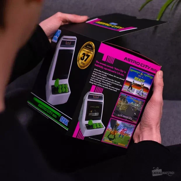 1 Console Sega Astro City Mini. Liste de jeux : Virtual Fighter, Space Harrier, Rad Mobile, Fantasy Zone, Altered Beast, Golden Axe, Golden Axe – The Revenge Of Death Adder, Alien Syndrome, Alien Storm, Wonder Boy, Wonder Boy In Monster Land, Wonder Boy III Monster Lair, Shinobi , Shadow Dancer, Cyber Police Eswat, Crack Down, Gain Ground, Quartet 2, Puyo Puyo, Puyo Puyo 2, Columns, Columns II, Stack Columns, Bonanza Bros., Tant-R, Ichidant-R, Thunder Force AC, Sonic Boom, Dottori Kun, Flicky, Sega Ninja, My Hero, Arabian Fight, Dark Edge, Cotton, "Alex Kidd with Stella The Lost Stars” , Scramble Spirits.