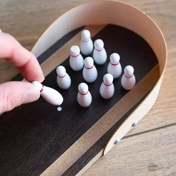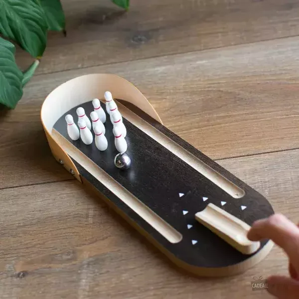 Ce Mini Bowling de Table en matériaux robustes et durables se joue exactement comme une vraie partie de bowling ! Très simple d'utilisation, installez les quilles sur les petits ronds et lancez la bille.