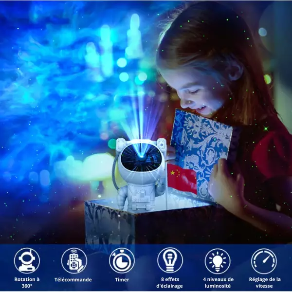 Projecteur d'étoiles StarryDreams : Lampe astronaute avec 8 modes d'affichage