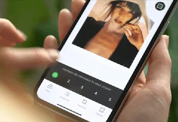 Connectez vous et transformez une image en un collage de deux, trois, quatre ou cinq images dans la composition de votre choix.