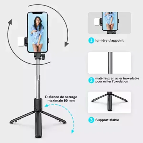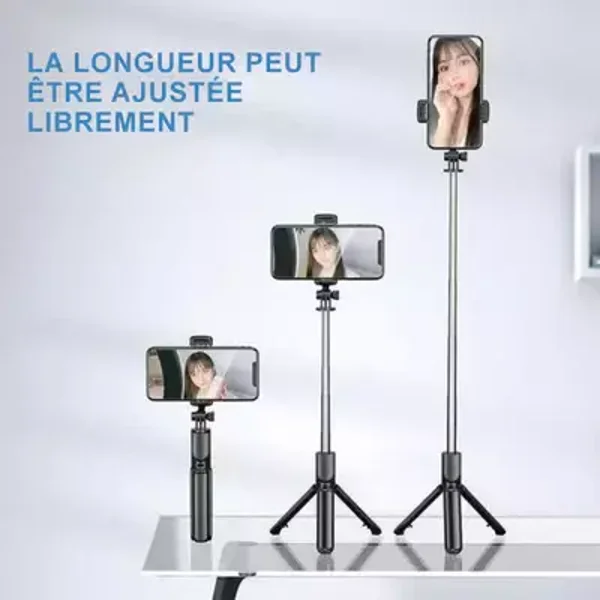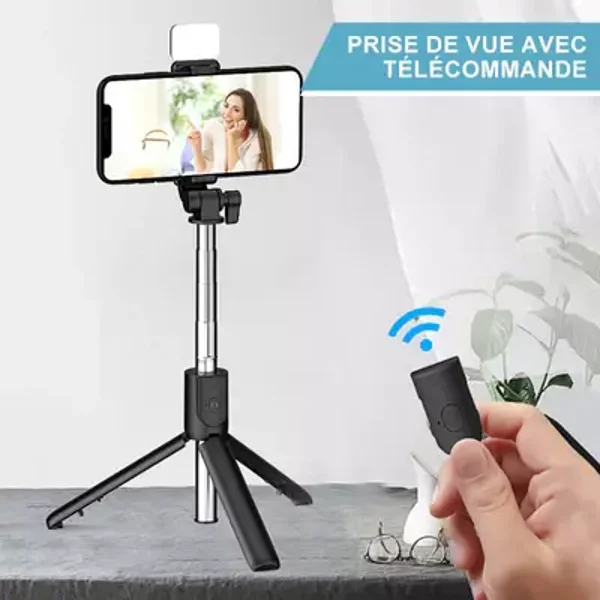 Combinaison perche à selfie et trépied de 28 pouces. Ce produit vous offre un mode professionnel tout-en-un pour faire passer vos photos au niveau supérieur.