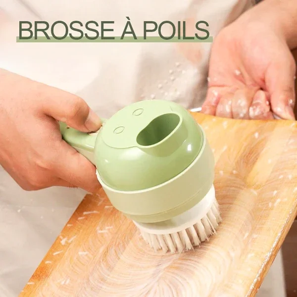 Brosse de nettoyage à poils durs : non seulement peut déchiqueter les légumes, mais aussi brosser les pots avec une tête de brosse, et les taches tenaces peuvent également être facilement traitées.
