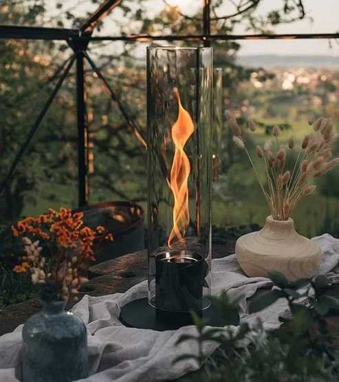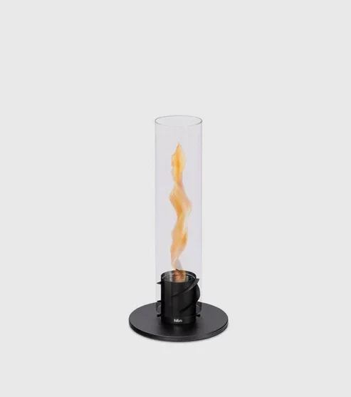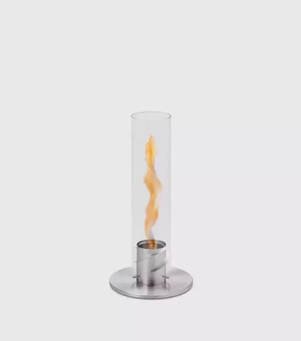 Introduisez le bioéthanol dans le réservoir, allumez le feu, puis placez le cylindre de verre par-dessus.