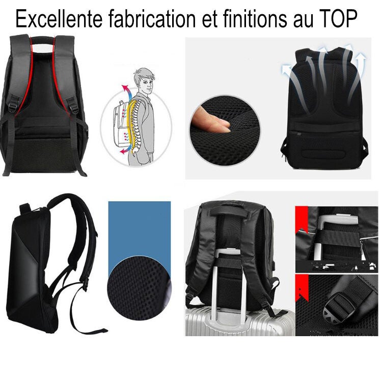 Connectez votre banque d’alimentation au port de charge USB interne (à l’intérieur du sac à dos).