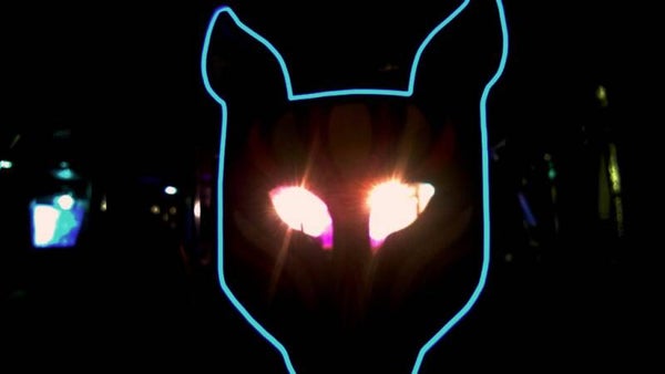 Le chanteur porte un masque de loup lumineux façon Daft punk durant toute la durée de ses concerts.