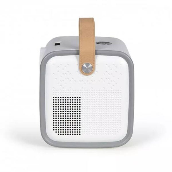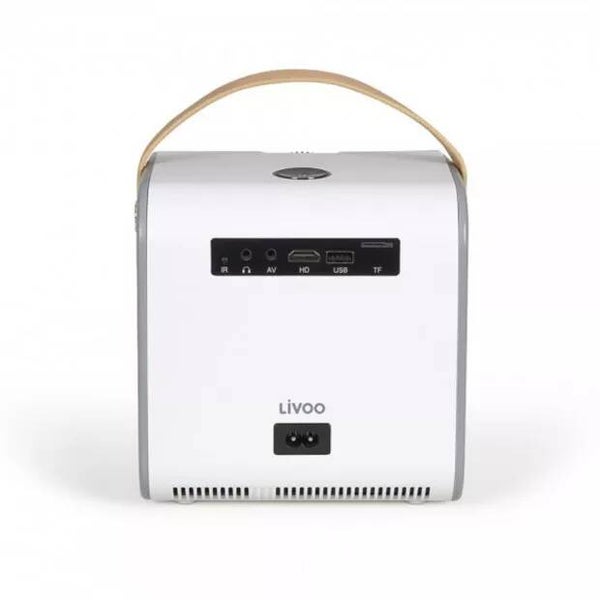 Connectique : port USB, HDMI, AV, Audio, Bluetooth, TF. Poignée de transport. Dimensions : 16,5 x 16,5 x 16,5 cm.