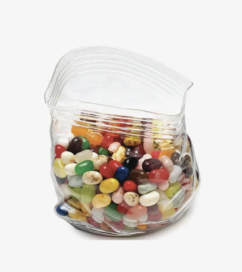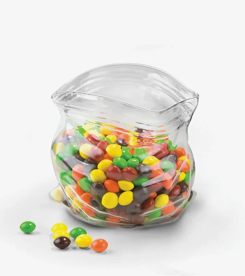 Un bocal en verre en forme de sachet zippé , afin de jouer sur l'originalité et le moderne. Idéal pour y mettre tes cacahuètes à l'apéro, des bonbons pour les enfants, ou tout autre chose, car au final, c'est toi qui choisis c'est ta vie et on n'est personne pour te juger frérot.