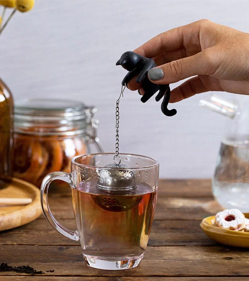 Ce petit chat ne veut pas jouer avec une pelote en laine, mais avec une boule à thé. Grâce à ses adorables petites pattes, il peut t'aider à égoutter ta boule à thé, la maintenir au chaud dans ton mug, le tout en l'observant d'un oeil curieux. À l'heure du thé, ce chat apporte une petite touche mignonne qu'on ne peut refuser.