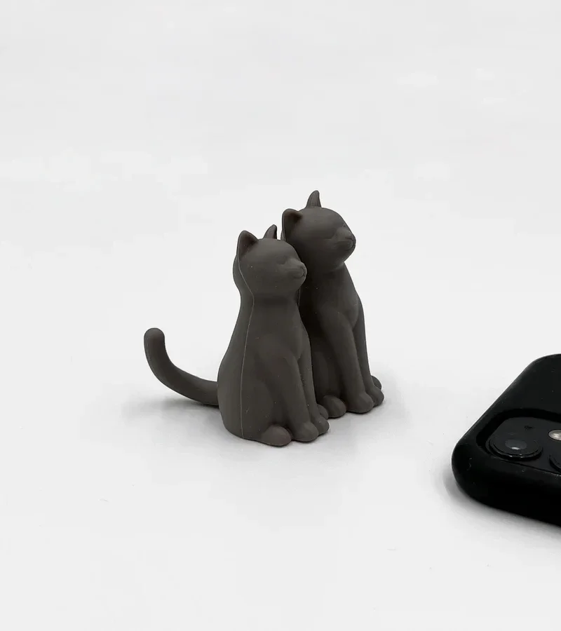 Faire tenir droit son téléphone pendant une série ou un appel vidéo n'est jamais chose aisée. Ce qu'il te faut, c'est ce support téléphonique Fred-Cat Call. D'une part il soutient parfaitement ton smartphone, mais c'est aussi deux chats qui se font un câlin. ET C'EST TROP MIGNON LES CHATS.