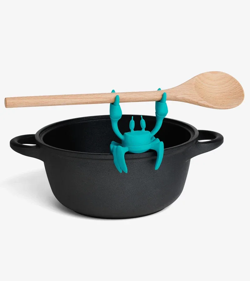 Ce crabe n'a peur de rien ! Alors que l'eau boue et que ton plat est brûlant, il est capable, grâce à sa force titanesque de crabe, de soulever à bout de pinces ta cuillère, afin de t'aider dans ta cuisine et d'éviter d'en foutre partout. Si ce crabe n'est pas ton meilleur allié, alors je ne sais pas ce qu'il est. Il en existe peu des crabes comme lui, alors profites-en.