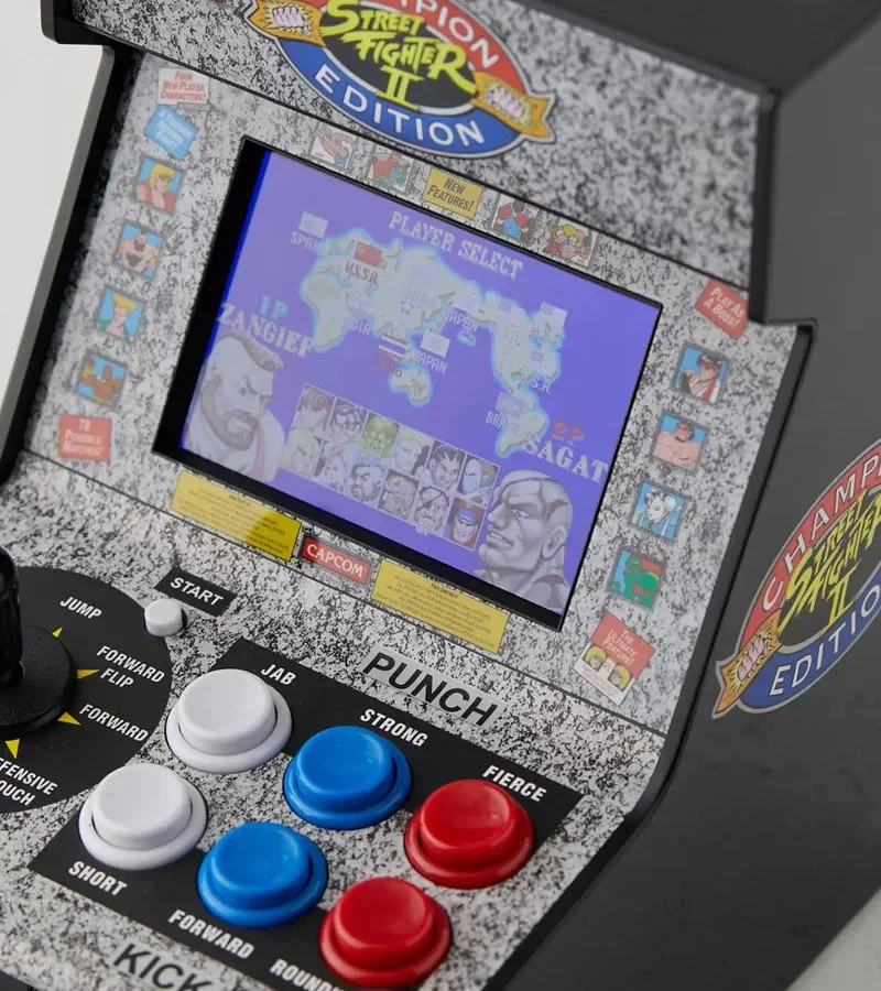 Revivez les meilleurs moments de votre jeunesse grâce à cette borne d'arcade Street Fighter ! Prêt à vous affronter en combat singulier avec des personnages venus du monde entier ? Les héros de la saga Street Fighter se sont à nouveau donnés rendez-vous dans un format micro-player revu et amélioré pour un maximum de fun.