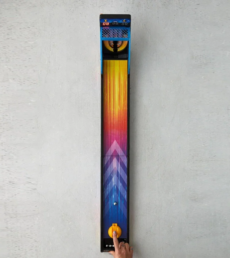 Du fun, de la compétition, de jolies couleurs flashy, voilà ce qui t'attend si tu ramènes ce beau bébé chez toi. Le principe est simple : utilise tes doigts pour lancer les billes au bout de l'allée et marquer un maximum de points. À toi les parties endiablées de bowling avec les doigts. À toi les soirées où tes potes et toi vous affrontez pour savoir qui conduit ce soir. À toi le bonheur tout simplement.