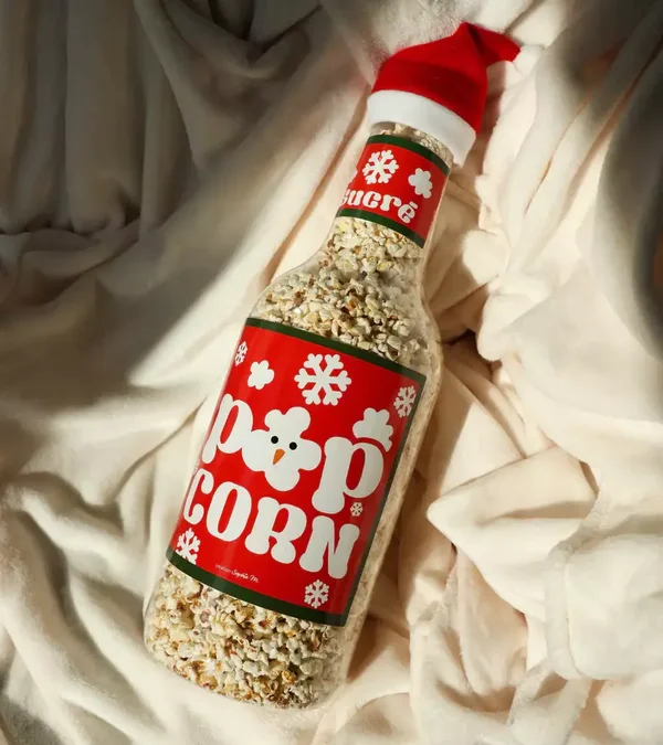 Cette bouteille XXL sera à la hauteur de votre envie ! Une bouteille de 50cm remplie de 300g de popcorn, ou 600g de soucoupes, à partager ou à garder pour soi.