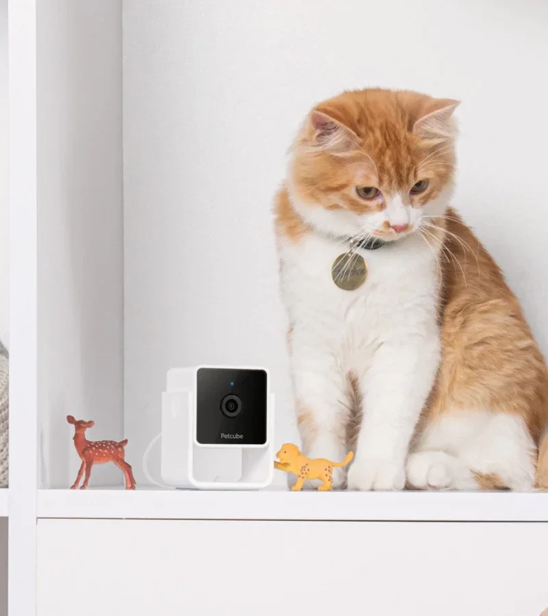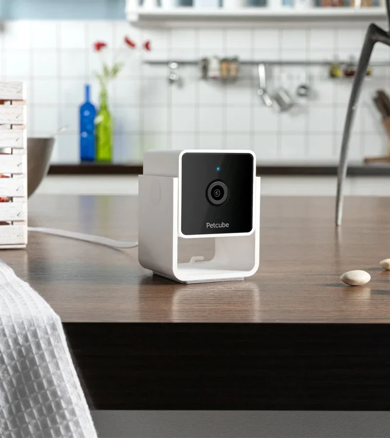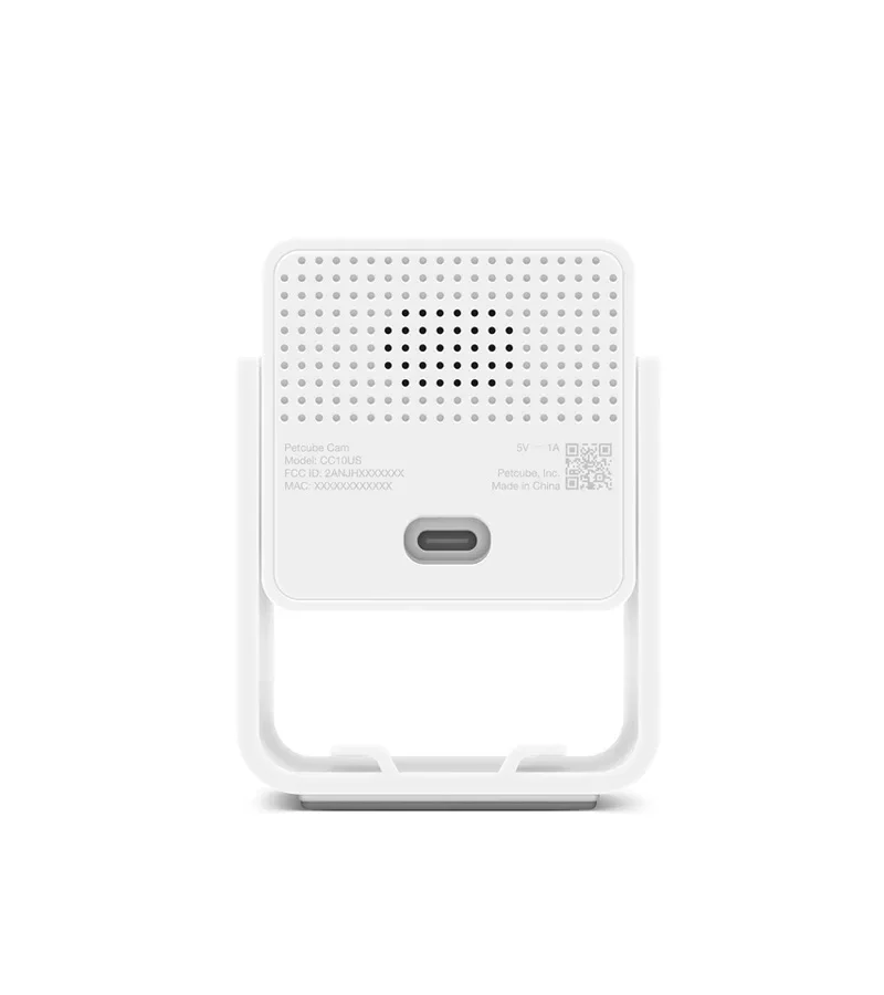 Inclus : 1 caméra Petcube, câble USB, adaptateur électrique, support magnétique et notice de démarrage rapide