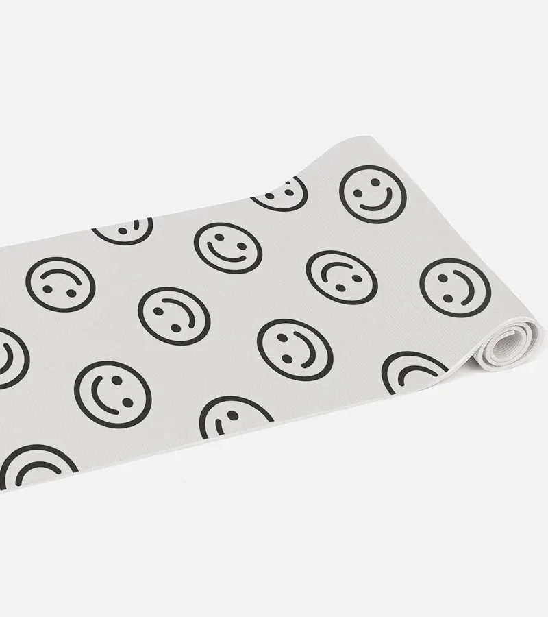 Si tu cherches un tapis de yoga qui te rendra heureux, celui-ci est fait pour toi. Simple et efficace, il fait le taf d'un tapis de yoga, mais en plus de ça, il te donne le smile. Tu peux évidemment l'emmener partout où tu vas, que ce soit à un cours de yoga ou un repas de famille. Tu fais comme tu veux c'est ta vie.
